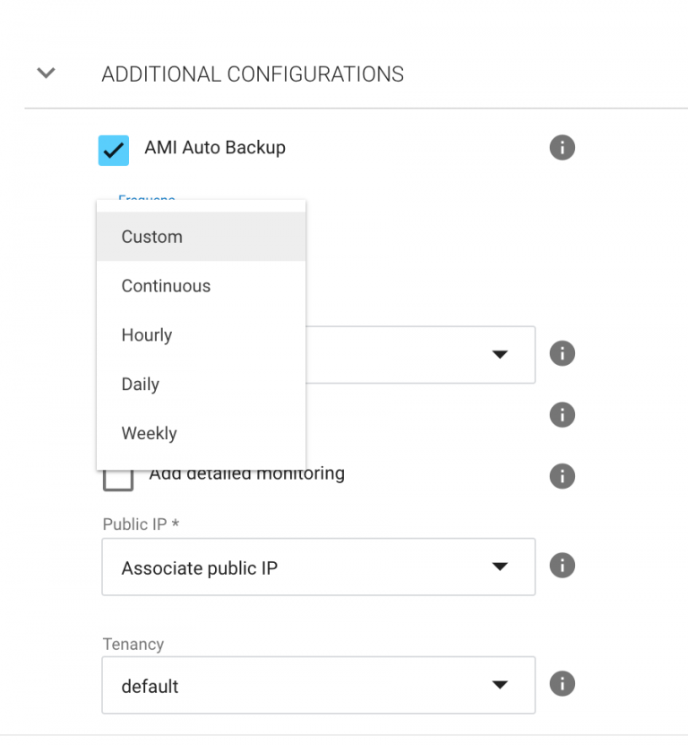 1. In the Elastigroup Creation Wizard (or group configuration) go to the Compute tab. Under Additional Configurations select the AMI auto-backup feature: